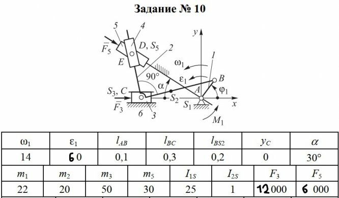 ДЗ: Угол 110 градусов, скорости и ускорения+силовой расчёт механизма (2020 г.) вариант 10