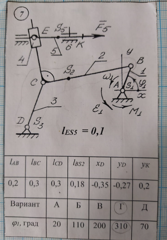 ДЗ: Вариант 7 - Кинематический анализ - Угол 240 вариант 7