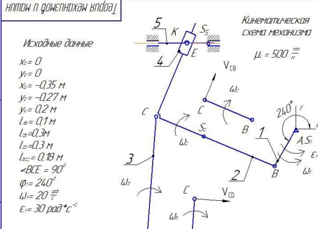 Зачтенная работа, кинематический анализ, планы ускорений и скоростей, расчеты ускорений и скоростей, кинематическая схема механизма