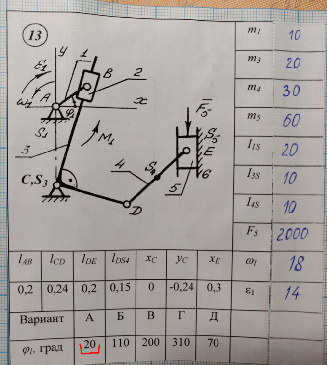Для студентов МГТУ им. Н.Э.Баумана по предмету Теория механизмов и машин (ТММ)Типовой расчёт 1, Фи=20Типовой расчёт 1, Фи=20