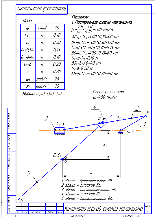 ДЗ: Кинематический анализ механизма, 13Д вариант 13