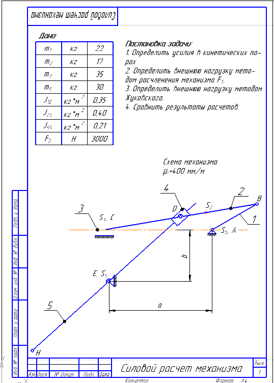 ДЗ: Силовой анализ механизма, 13Д вариант 13