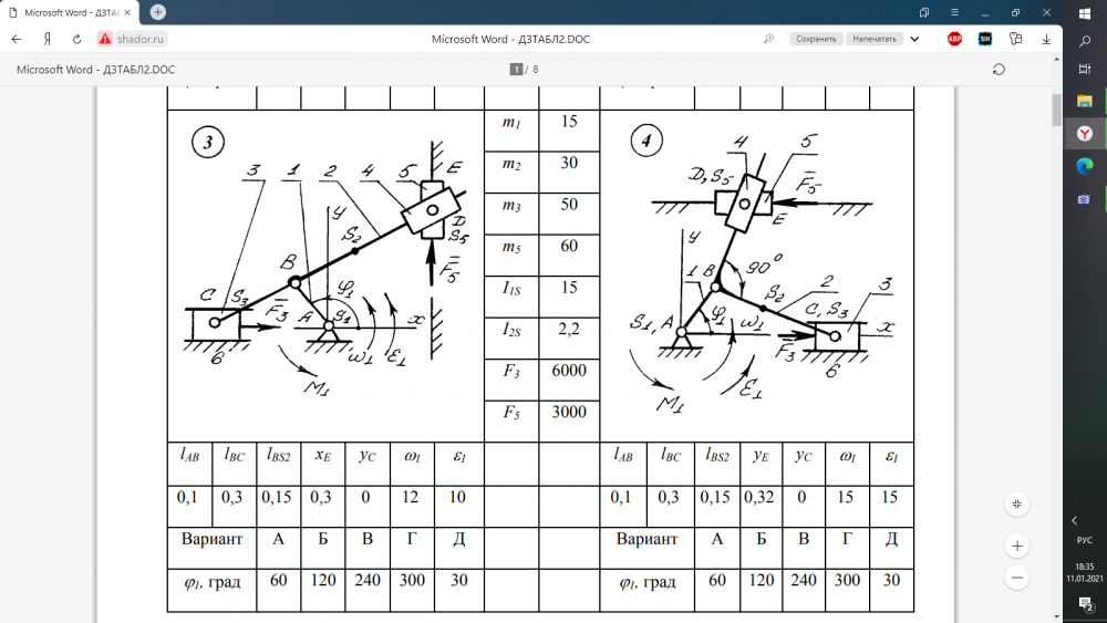 ДЗ: Кинематический анализ. Маткад вариант 4
