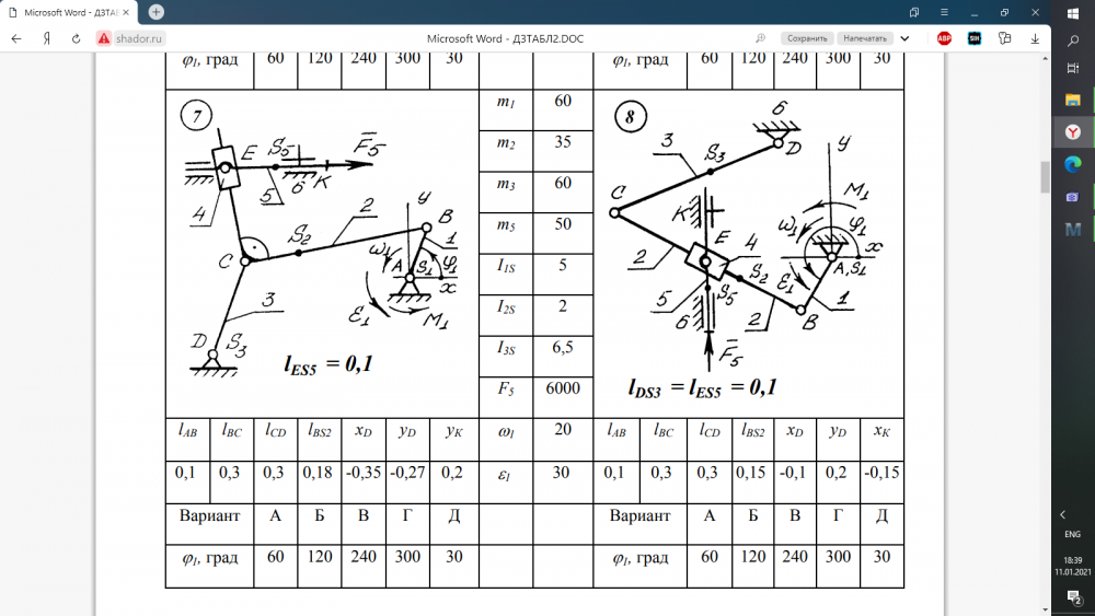 ДЗ: Кинематический анализ. Маткад вариант 7