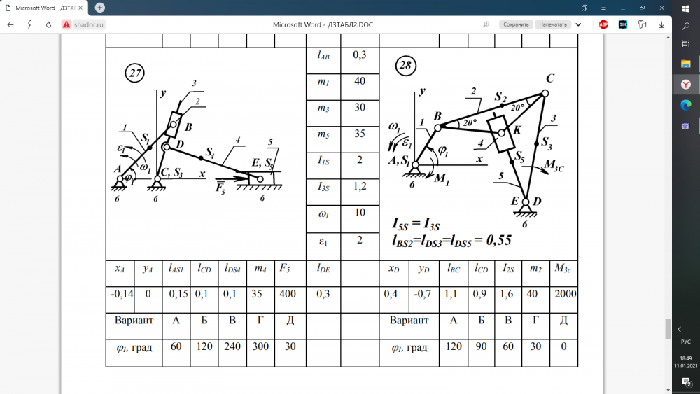 ДЗ: Кинематический анализ. Маткад вариант 28