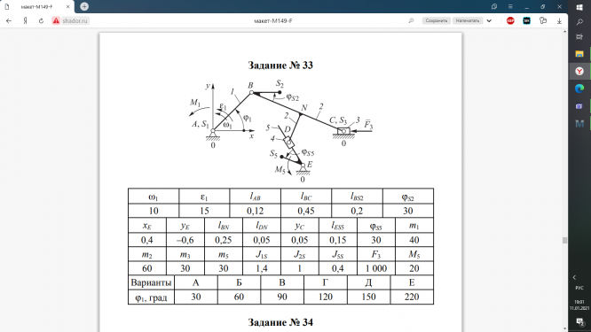 ДЗ: Кинематический анализ. Маткад вариант 33