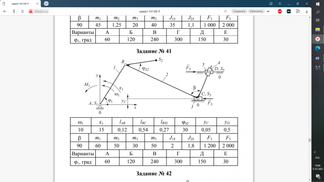 ДЗ: Кинематический анализ. Маткад вариант 41