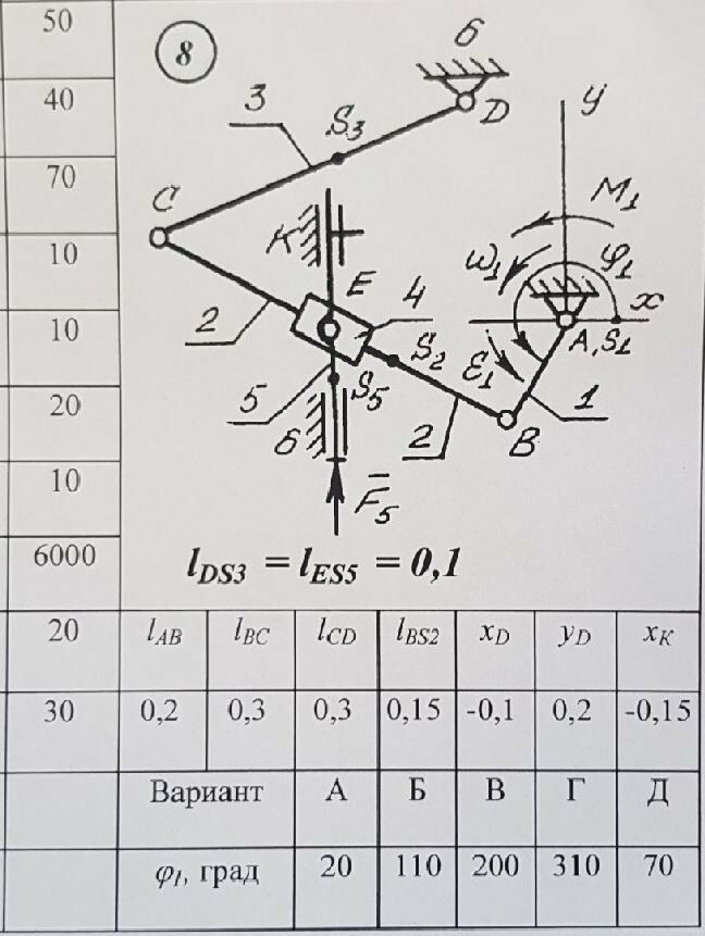 ДЗ: ДЗ ТММ, Вариант 8(Д), φ1 = 70° вариант 8