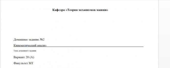 ДЗ: Выполненное дз2 по теории механизмов и машин вариант 20А см условие вариант 20