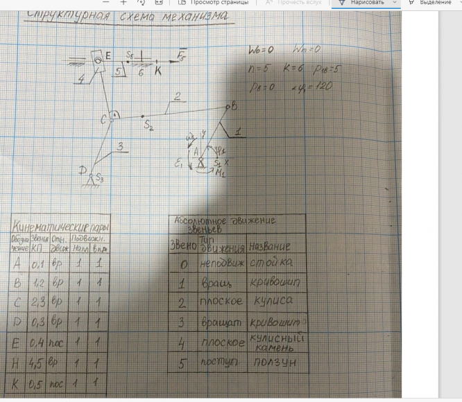 ДЗ: Готовое дз1 по теории механизмов и машин вариант 7 (см условие) вариант 7
