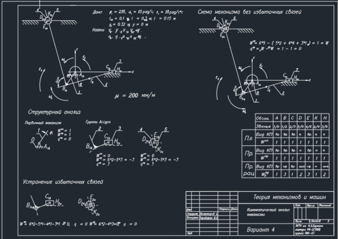 Для студентов МГТУ им. Н.Э.Баумана по предмету Теория механизмов и машин (ТММ)Типовой расчёт ДЗ №1 и №2Типовой расчёт ДЗ №1 и №2