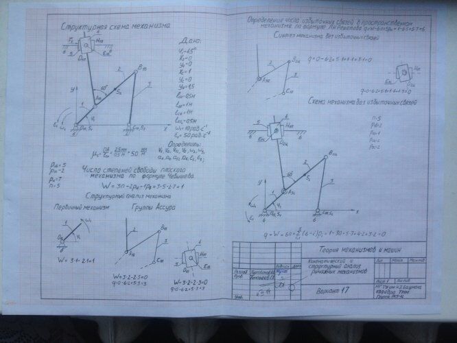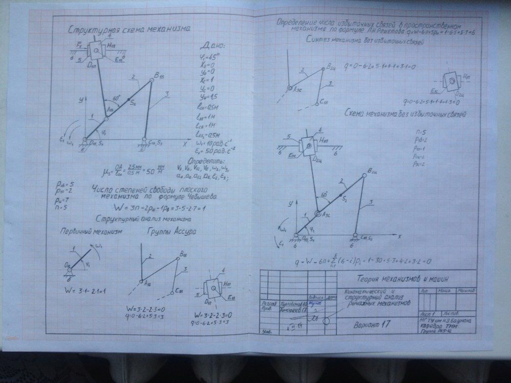 Для студентов МГТУ им. Н.Э.Баумана по предмету Теория механизмов и машин (ТММ)Вариант 17 ДЗ 1 и ДЗ 2Вариант 17 ДЗ 1 и ДЗ 2