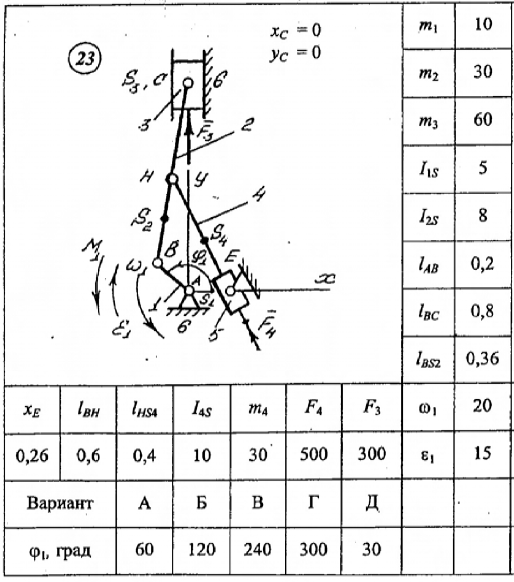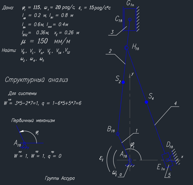 ДЗ 23: Кинематический анализ механизма (φ=115° )
