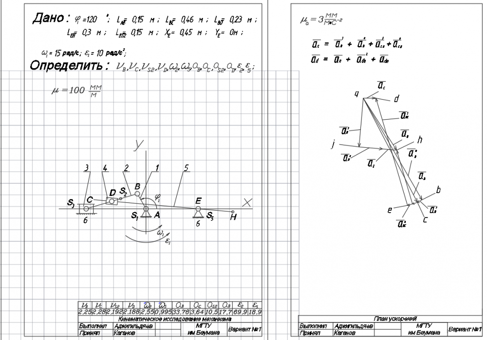 Для студентов МГТУ им. Н.Э.Баумана по предмету Теория механизмов и машин (ТММ)Вариант 1 - ДЗ №1 - Структурный и Кинематический анализВариант 1 - ДЗ №1 - Структурный и Кинематический анализ