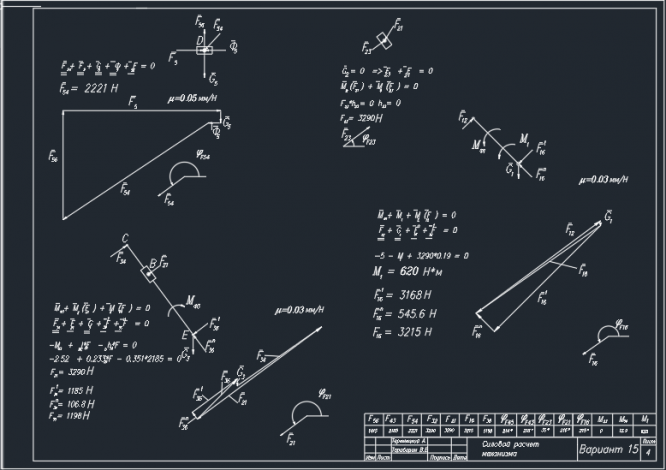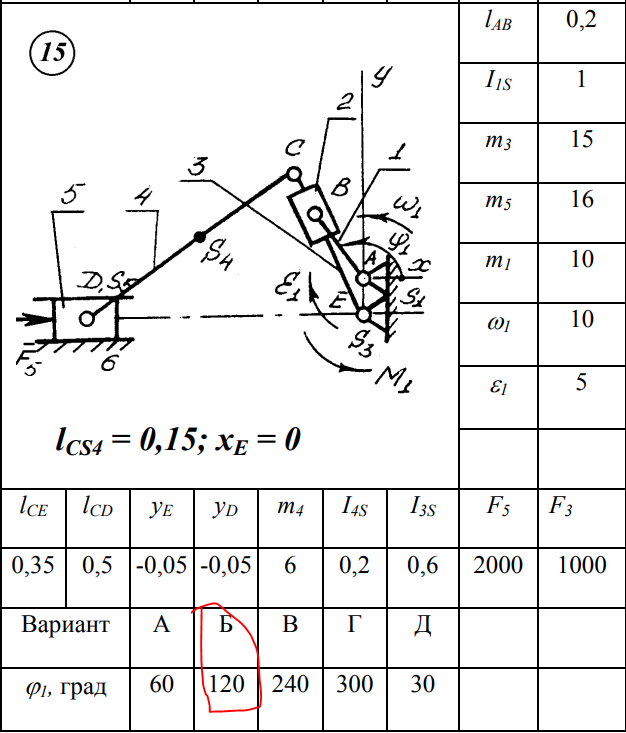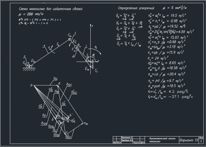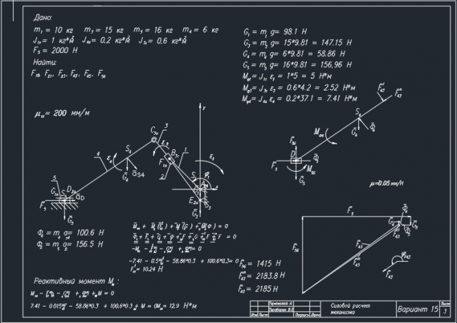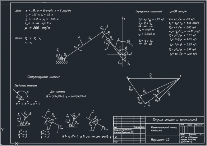 ДЗ 1, 2: Структурный и Кинематический анализ + Силовой анализ вариант 15