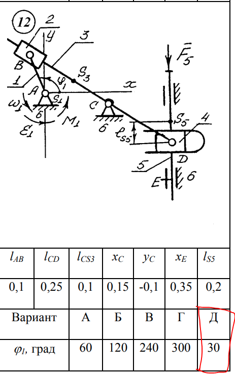 Вариант 12 - ДЗ №1 - Структур и Кинематический анализ - Угол 30