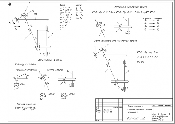 Для студентов МГТУ им. Н.Э.Баумана по предмету Теория механизмов и машин (ТММ)Структур и Кинематический анализСтруктур и Кинематический анализ