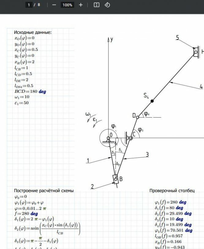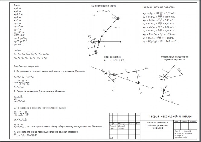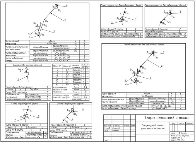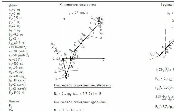 Для студентов МГТУ им. Н.Э.Баумана по предмету Теория механизмов и машин (ТММ)Структурный и Кинематический анализ + Силовой анализСтруктурный и Кинематический анализ + Силовой анализ