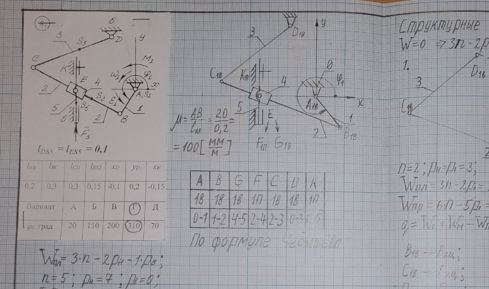 Вариант 8 - ДЗ №1 - Структурный анализ механизма (Угол 310)