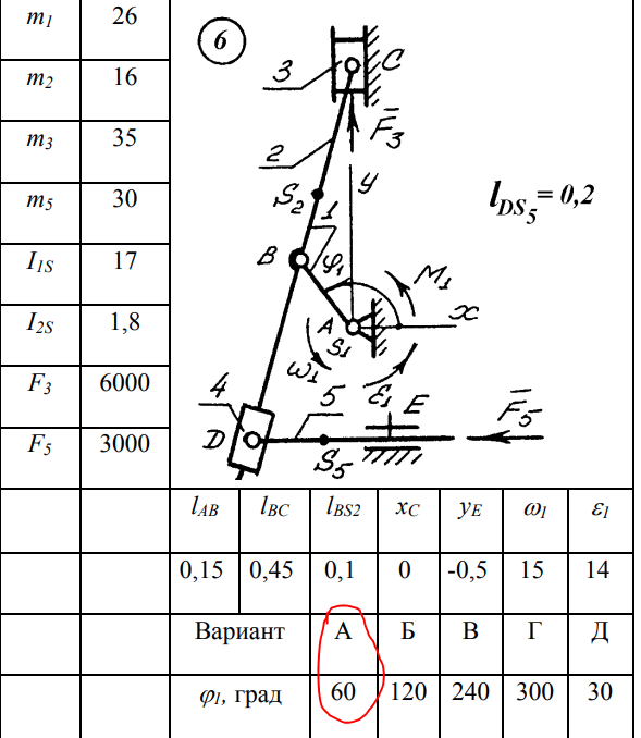ДЗ А: Структурный и Кинематический анализ + Силовой анализ вариант 6