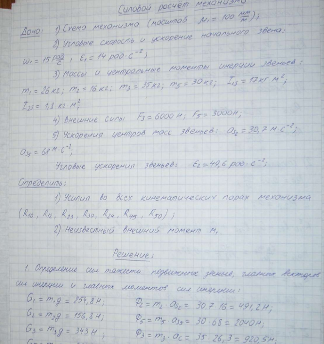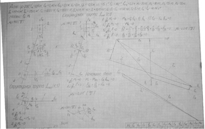 Для студентов МГТУ им. Н.Э.Баумана по предмету Теория механизмов и машин (ТММ)Структурный и Кинематический анализ + Силовой анализСтруктурный и Кинематический анализ + Силовой анализ