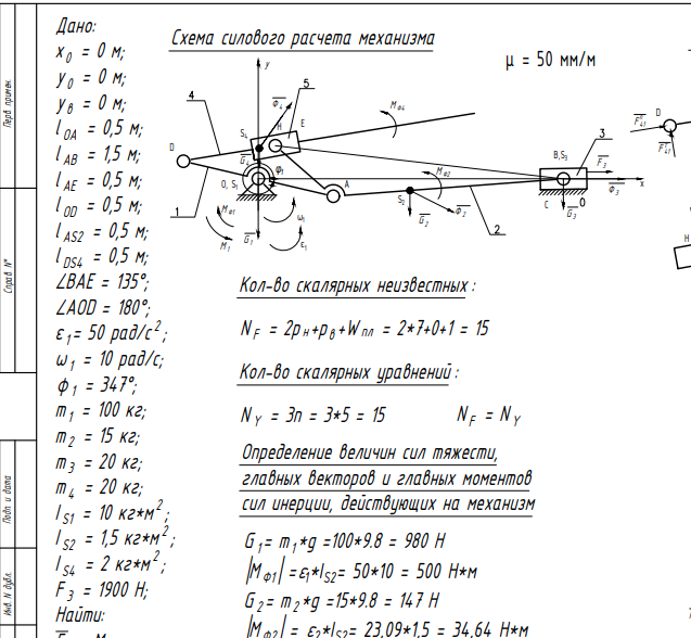 ДЗ 2: Силовой анализ анализ механизма вариант 8