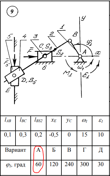 ДЗ 1, 2: Структурный и Кинематический анализ + Силовой анализ вариант 9