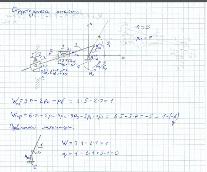 Для студентов МГТУ им. Н.Э.Баумана по предмету Теория механизмов и машин (ТММ)Структурный и Кинематический анализ + Силовой анализСтруктурный и Кинематический анализ + Силовой анализ