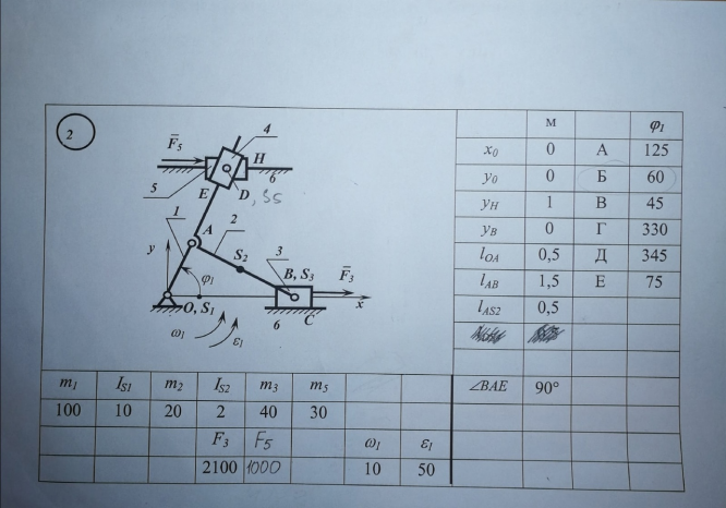 ДЗ: ДЗ № 1-2 - кинематический анализ и силовой расчет механизма (угол 60) вариант 4