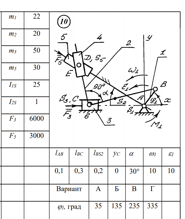 ДЗ: ДЗ№1, 2 угол 35° (группы Ассура + скорости, ускорения) вариант 10
