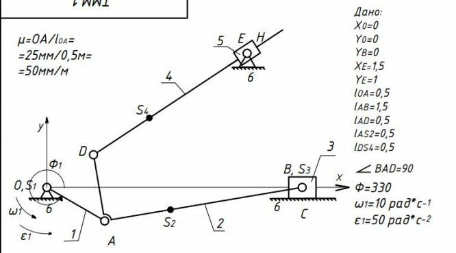 Для студентов МГТУ им. Н.Э.Баумана по предмету Теория механизмов и машин (ТММ)ДЗ№1 6 вар фи=330ДЗ№1 6 вар фи=330