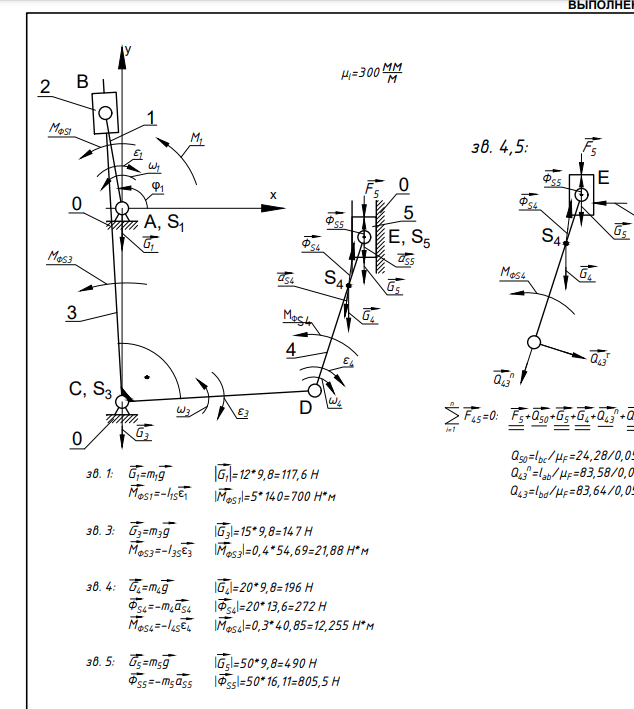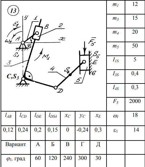 ДЗ 2: Силовой анализ рычажных механизмов вариант 13