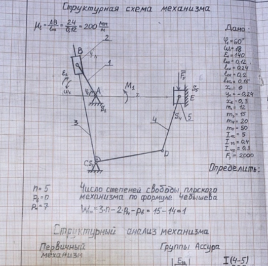 Зачтенная работа, планы скоростей и ускорений, расчеты скоростей и ускорений, структурная и кинематическая схемы механизма. Подробнее в скриншотах ниже