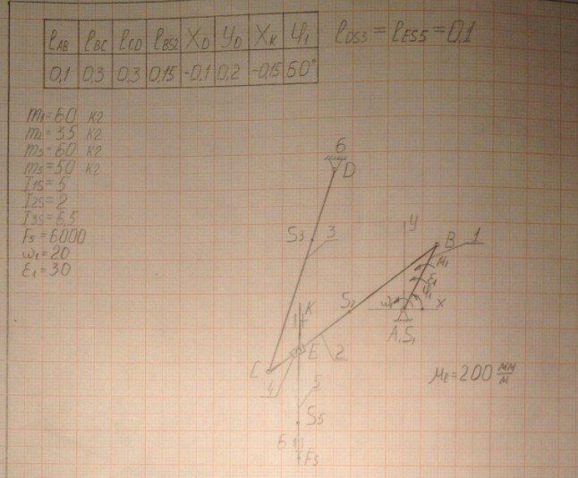 ДЗ: Полный кинематический анализ ( угол 60 градусов) вариант 8