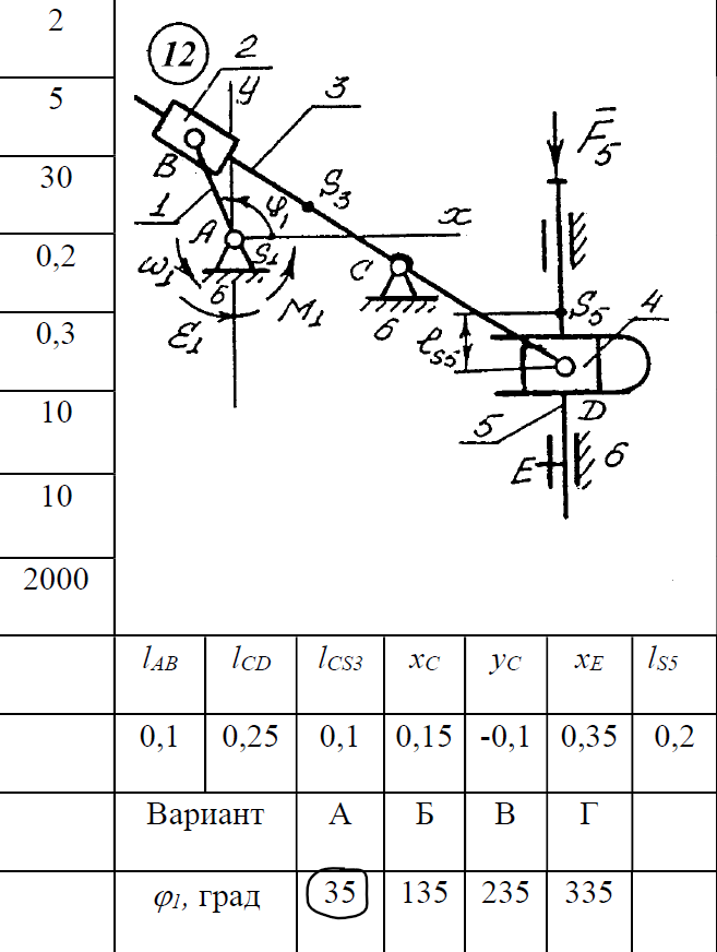 ДЗ: ДЗ 1 и 2. Кинематический и Силовой расчет. Угол фи=35 вариант 12