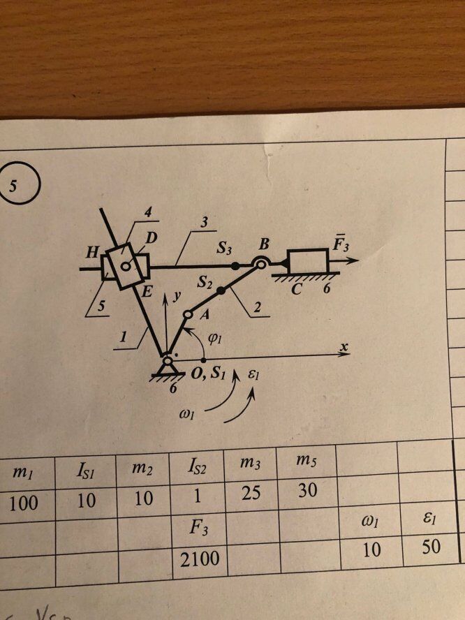 ДЗ: ТММ. Задача 1. 5 вариант. Угол 55 град. (структурный анализ+решение) вариант 5