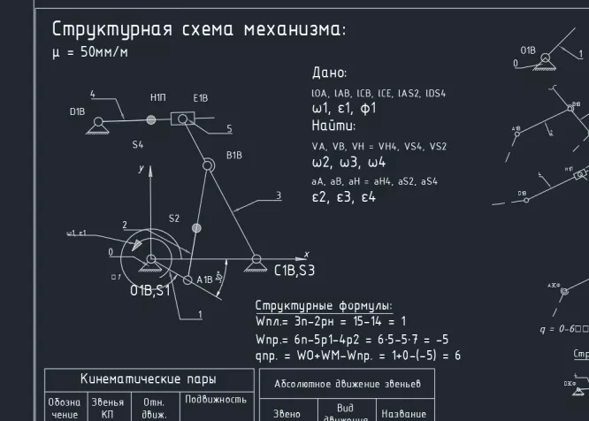 Домашнее задание №1 (Кинематический и силовой анализ + планы скоростей и ускрений)