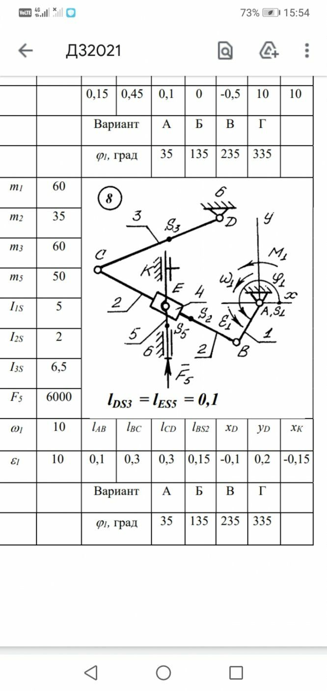 ДЗ: Скорости и ускорения 35 градусов вариант 8