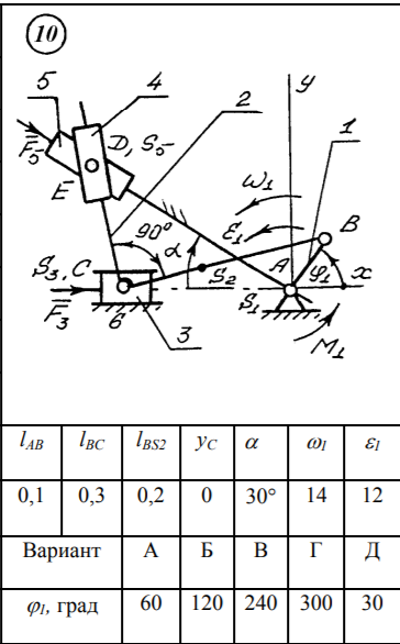 ДЗ: Структурный и кинематический анализ, силовой расчет 110 градусов вариант 10