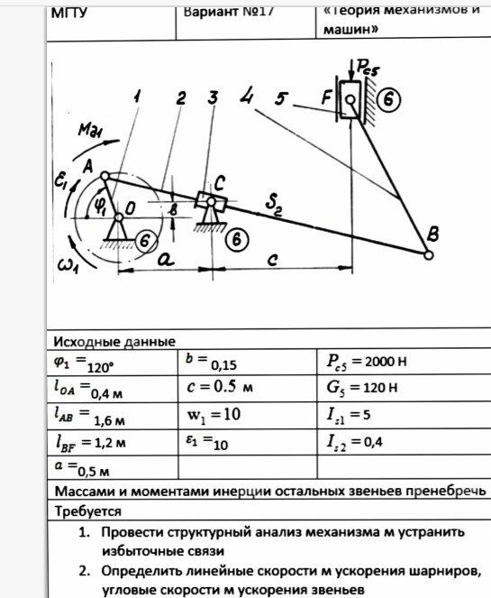 Главная » Учебные материалы » Теория механизмов и машин (ТММ) » Домашние задания » МГТУ им. Н.Э.Баумана » 4 семестр » Вариант 17 » Структурный анализ и синтез + Кинематический анализ(120 градусов)