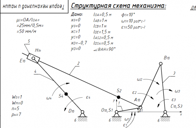 ДЗ: Структурный, кинематический и силовой анализ механизма. Начальный угол 10 градусов