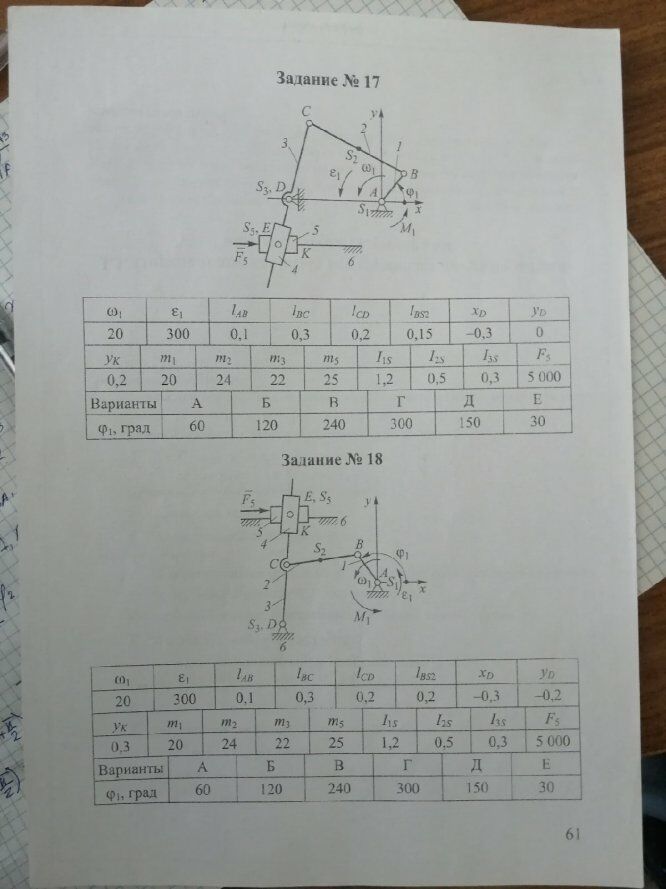 Для студентов МГТУ им. Н.Э.Баумана по предмету Теория механизмов и машин (ТММ)Задание 17А 2021г Кинематический анализ + Силовой расчет (ДЗ2 и 3)Задание 17А 2021г Кинематический анализ + Силовой расчет (ДЗ2 и 3)