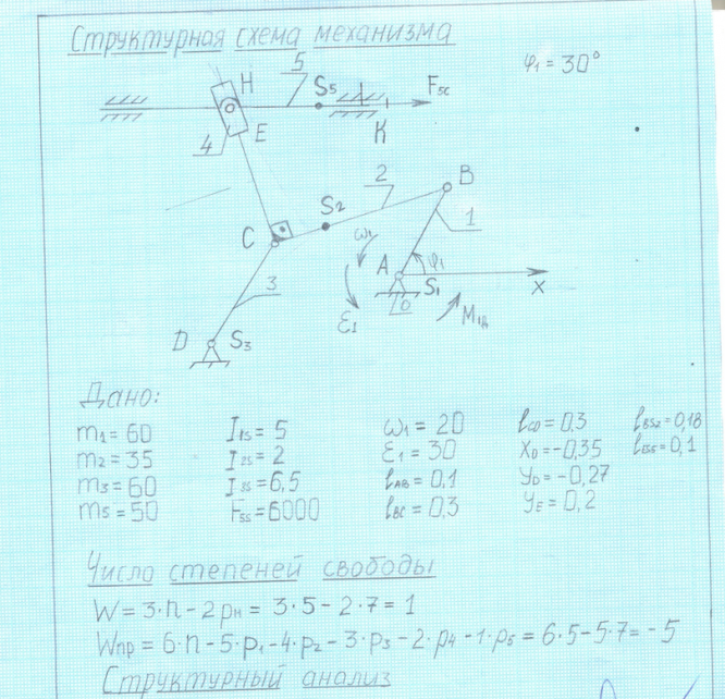 ДЗ: ДЗ Силовой расчет, Вариант 7Д (Угол 30) вариант 7