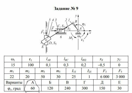 ДЗ: Структурный анализ и синтез , Кинематический анализ и Силовой расчет ( угол 60 градусов) вариант 9