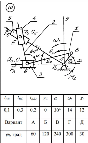 ДЗ: Структурный анализ, планы скоростей и ускорений. фи=175 вариант 10