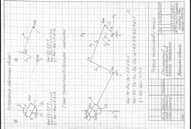 Для студентов МГТУ им. Н.Э.Баумана по предмету Теория механизмов и машин (ТММ)Структурный и кинематический анализСтруктурный и кинематический анализ