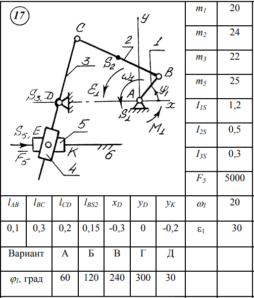 Для студентов МГТУ им. Н.Э.Баумана по предмету Теория механизмов и машин (ТММ)Вариант 17А - 2021г - Кинематический и силовой расчетВариант 17А - 2021г - Кинематический и силовой расчет