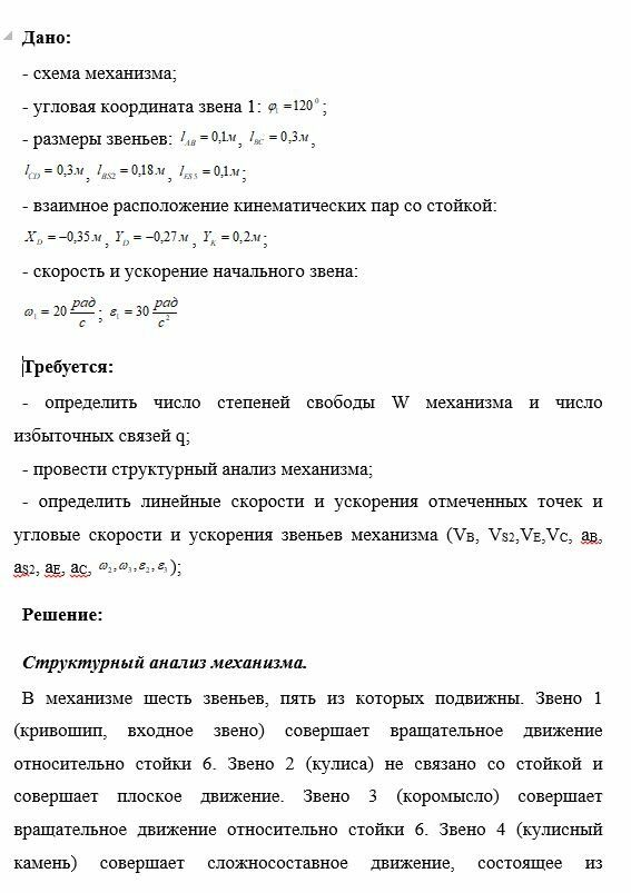Вариант 3 - ДЗ №1 - Структурный и Кинематический анализ - Угол 120