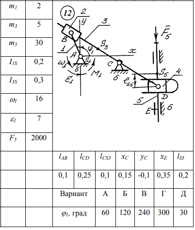 ДЗ 1: Кинематический анализ механизма вариант 12