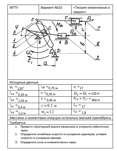 Для студентов МГТУ им. Н.Э.Баумана по предмету Теория механизмов и машин (ТММ)ДЗ ТММ Подчасов 10 вариантДЗ ТММ Подчасов 10 вариант